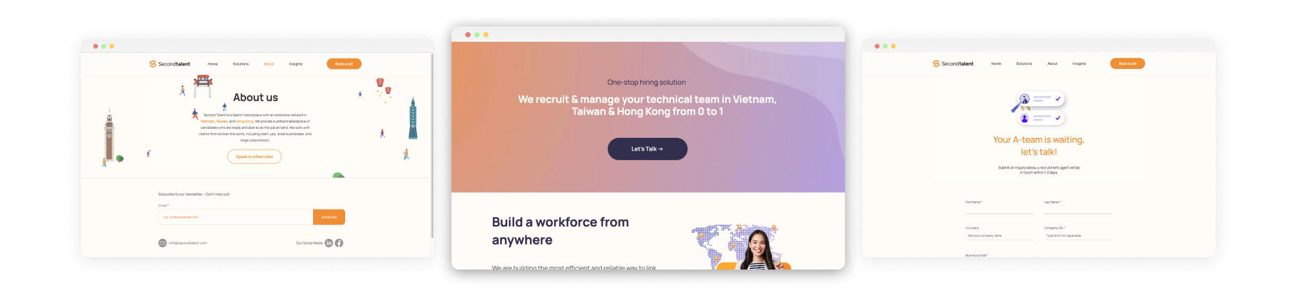 Second Talent is a recruitment startup based in Hong Kong. The company aims to connect tech talents in Southeast Asia to international hirers. I was commissioned to revamp their marketing website currently hosted by Wix.