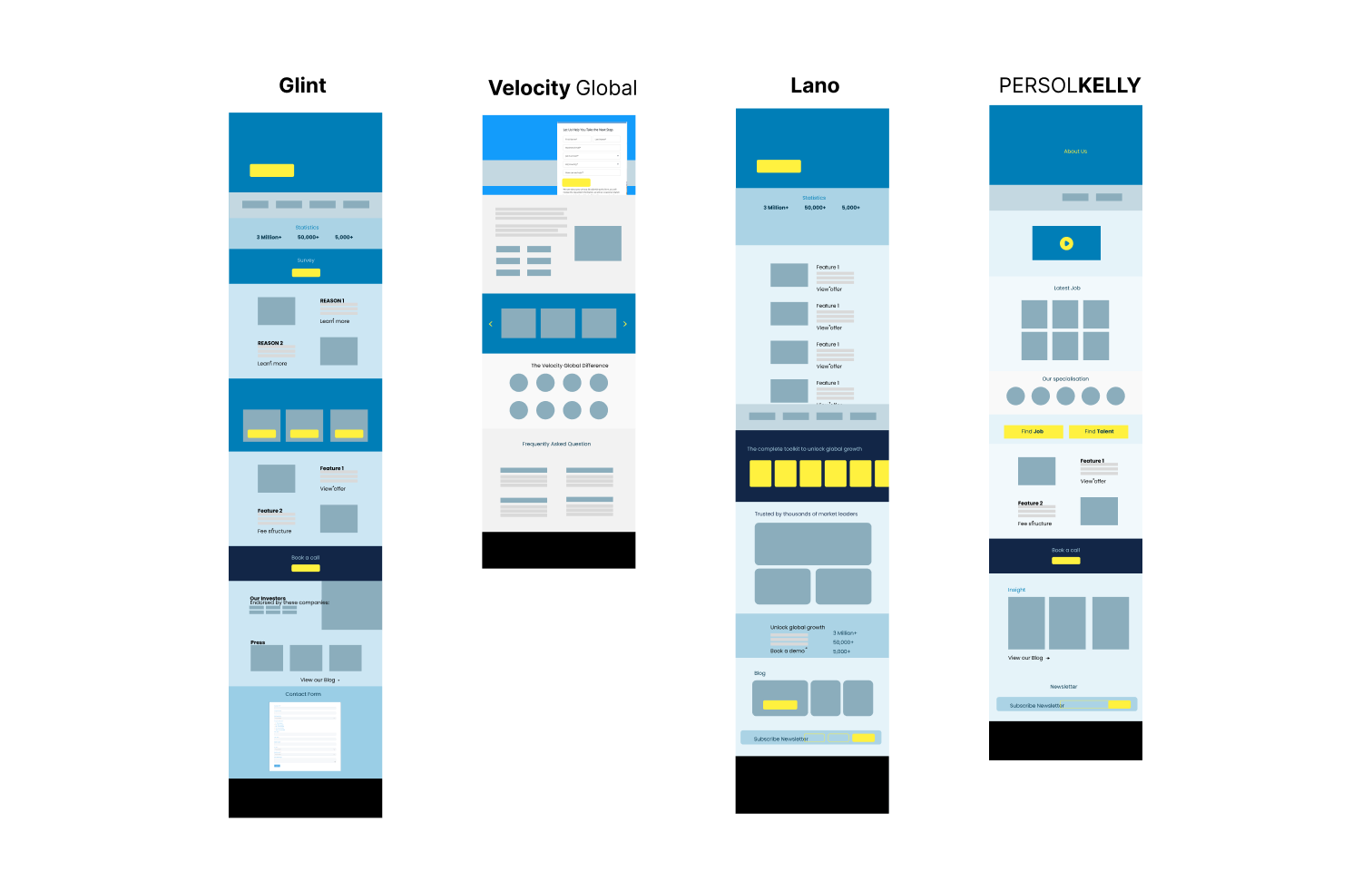 Comparing content structure of different companies. This allows me to grasp the what types of contents go together. I understood that it is common to include: